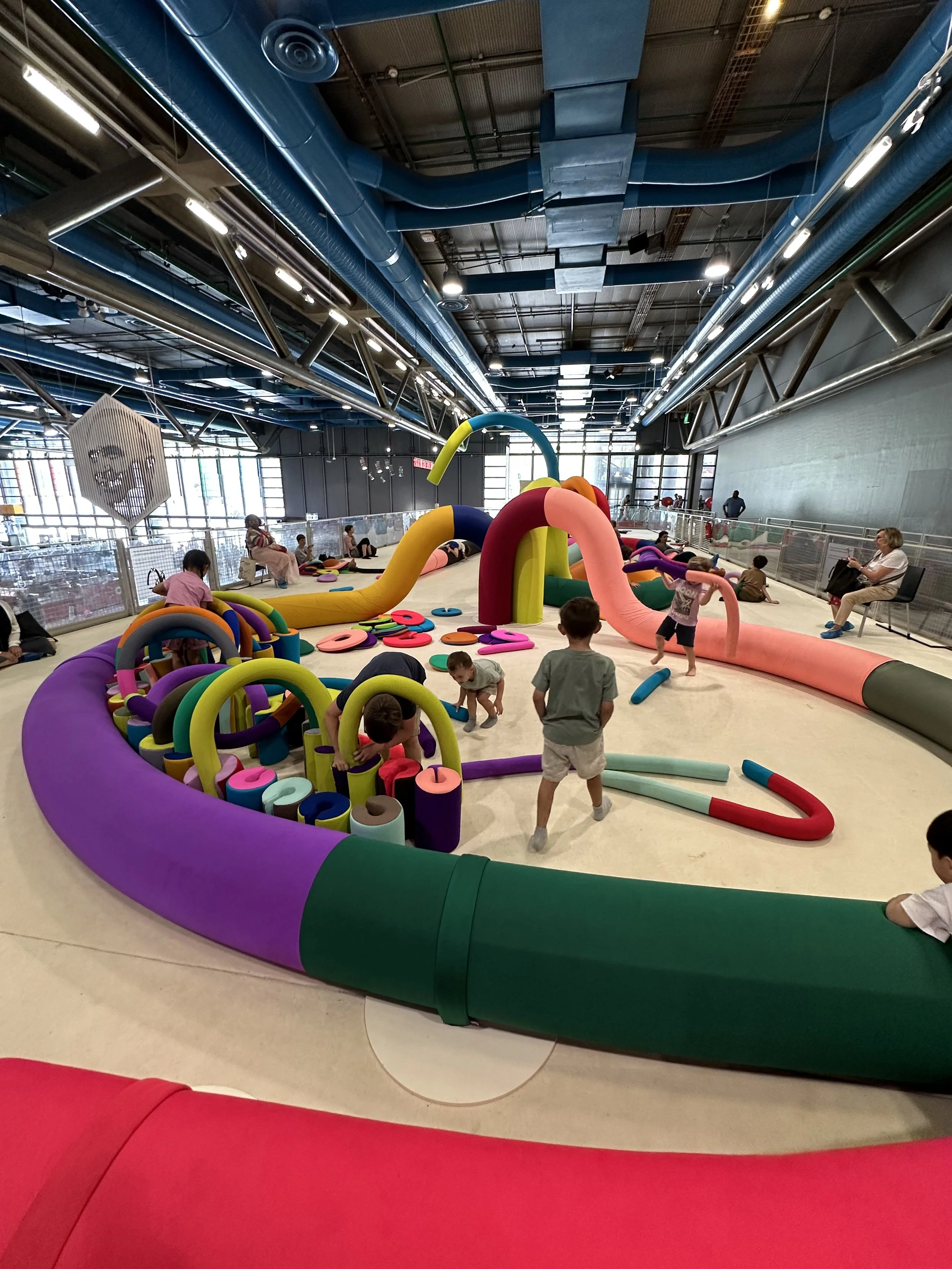 Galerie des enfants inside the Centre Pompidou is a really great indoor playground. Shoes off, kids must be accompanied by adult and I think you have to show your ticket to the museum but otherwise is free.