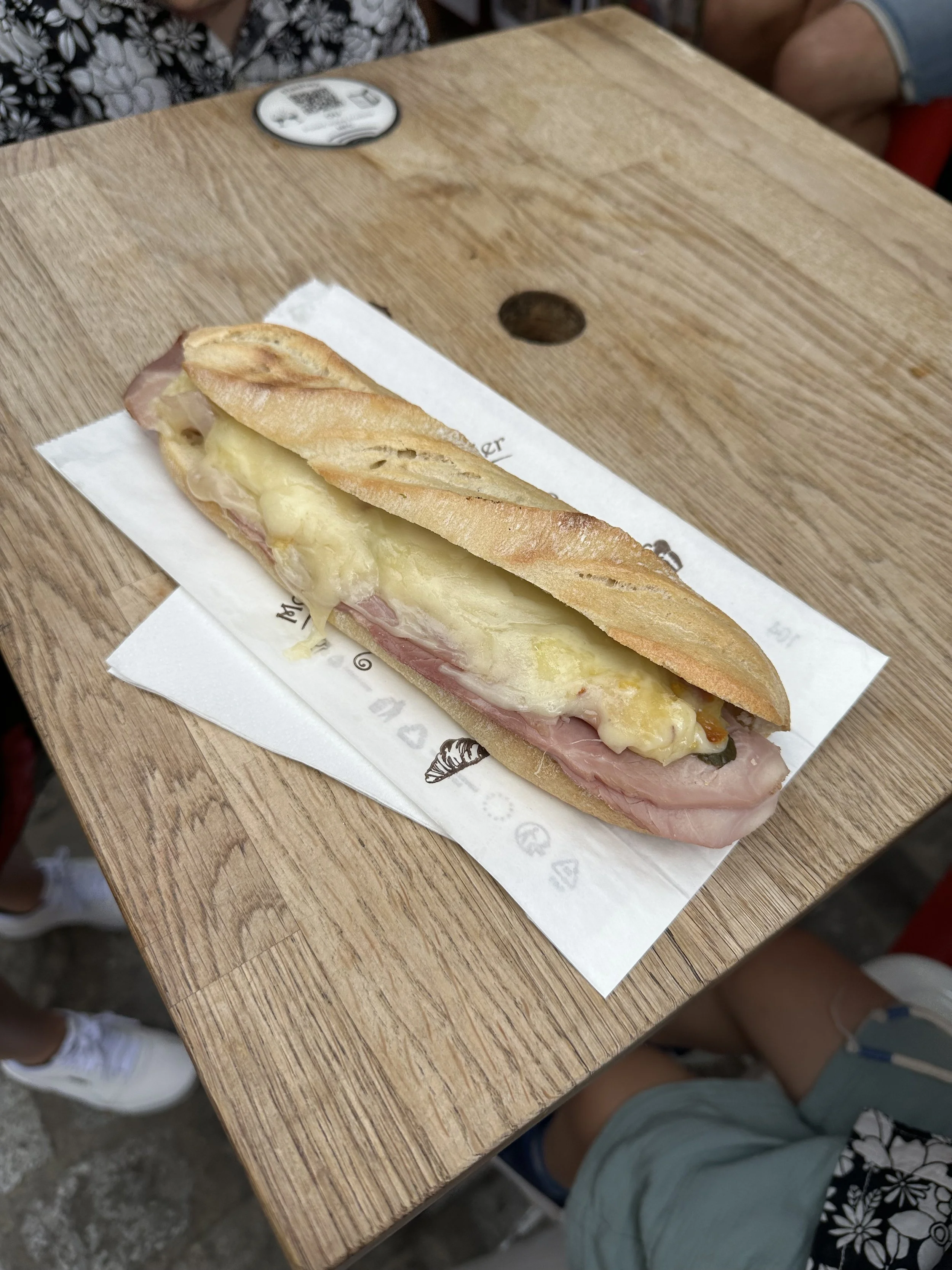 Grenouilles . Good spot in Montmartre to grab a sandwich and beer. Recommendation is the Raglette where they pour the heated cheese on top.